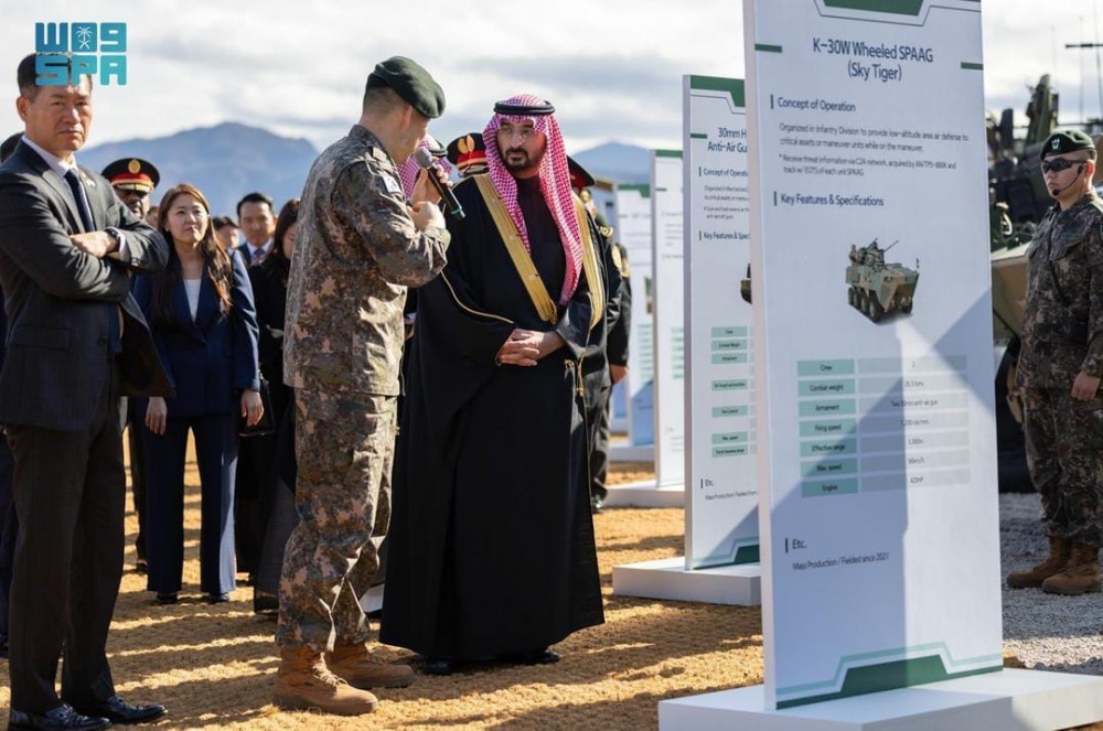 حضر صاحب السمو الملكي الأمير عبدالله بن بندر بن عبدالعزيز وزير الحرس الوطني، في إطار زيارته الحالية لجمهورية كوريا عرضاً عسكرياً متكاملًا لأنظمة وأسلحة وزارة الدفاع الوطني الكورية وقدراتها القتالية، وذلك بهدف توسيع الشراكة الدفاعية الثنائية.