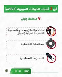 كشفت الإدارة العامة للمرور عن أبرز (3) مسببات للحوادث المرورية في عام 2023 في منطقة جازان.