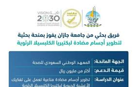 فاز فريق بحثي من جامعة جازان بكلية الصيدلة بدعم بحثي يتجاوز المليون ريال من المعهد الوطني السعودي للصحة، في دراسة بعنوان “تطوير أجسام مضادة مناعية تعمل على تفكيك الأغشية الحيوية لبكتيريا الكلبسيلا الرئوية”.