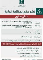 وتؤكد “التجارة” التصدي لمخالفي نظام مكافحة الغش التجاري وتطبيق العقوبات النظامية ضدهم، حيث ينص النظام على فرض عقوبات تصل إلى السجن ثلاث سنوات، وغرامات مالية تصل إلى مليون ريال أو بهما معًا، والتشهير بالمخالفين على نفقتهم.