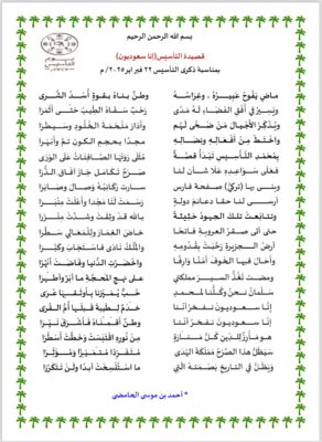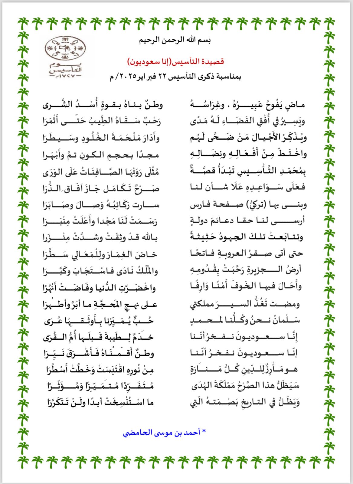 آخر الأخبار > يوم التأسيس قصيدة الشاعر الدكتور احمد بن موسى الحامضي > e66d1ba7-521a-4d7f-9838-f965c149fb9c