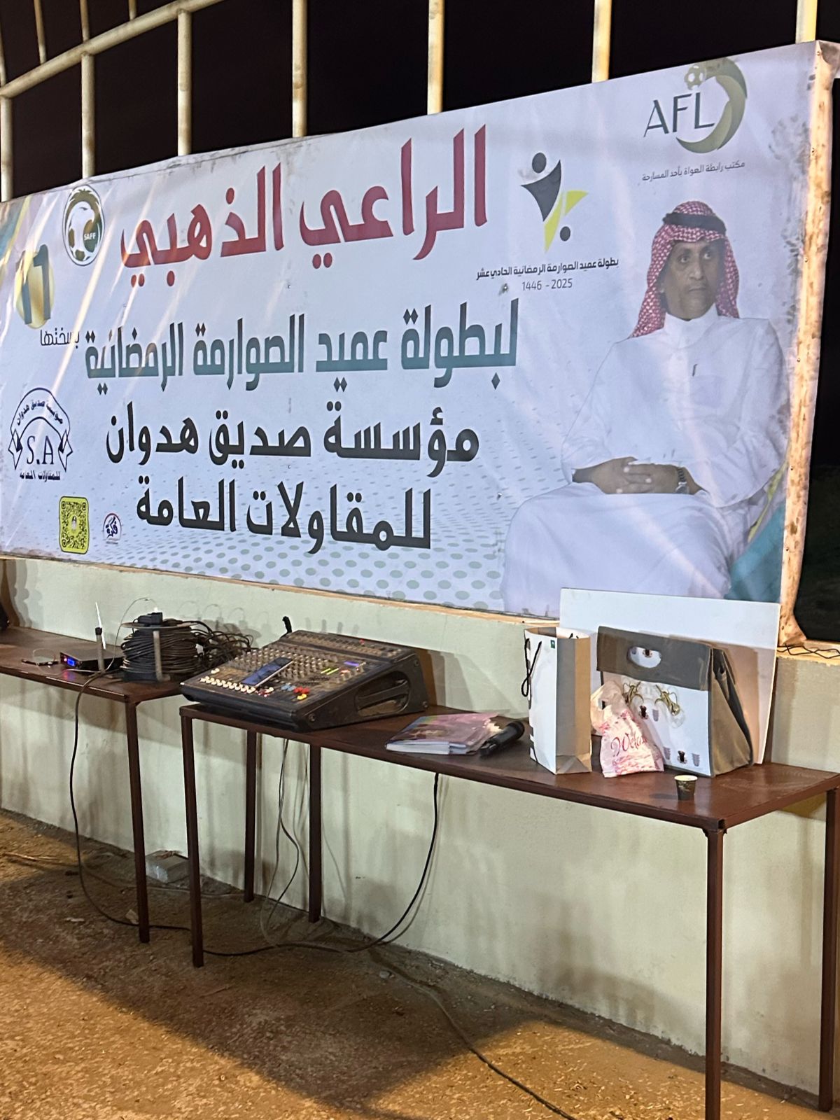 في النسخة الحادي عشر من الدورة الرمضانية لبطولة عميد الصوارمة التي تقام بملعب عميد الصوارمة تتصدر مؤسسة صديق هدوان للمقاولات الداعمين تحت مسمى الراعي الذهبي لبطولة الصوارمة الرمضانية وذلك لمشاركتها ودعمها المستمر للبطولة طوال الأعوام الماضية ممثلة بالأستاذ صديق بن علي هدوان صيرم
