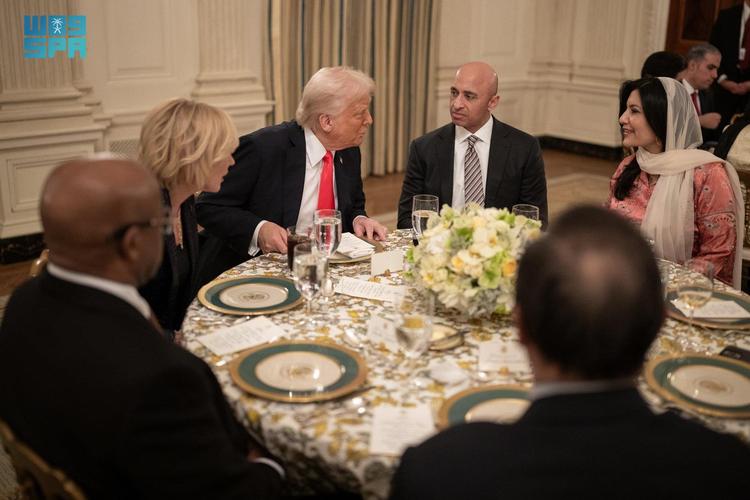 وشهد الإفطار حضور عدد من السفراء المعينين ومن بينهم صاحبة السمو الملكي الأميرة ريما بنت بندر بن سلطان بن عبدالعزيز سفيرة خادم الحرمين الشريفين لدى الولايات المتحدة الأمريكية، التي وصفها الرئيس بأنها “سيدة مميزة”، معربًا عن سعادته بلقائها.
