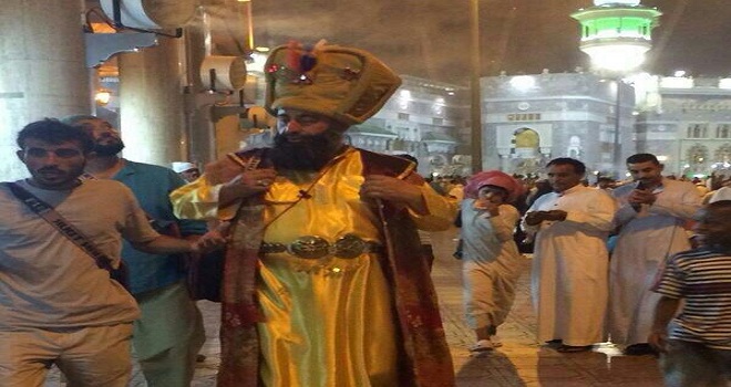 ويظهر في الفيديو المرفوع على “يوتيوب” بتاريخ (1 يوليو 2014) رجلًا يمشي بثبات، لم يلتفت لنظرات من حوله له، متقمصًا شخصية السلطان باللباس التاريخي الذي يرتديه، ولم يعترض طريقة أحد، لا من شرطة الحرم المكي و لا من المعتمرين.