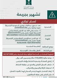 “التجارة” تٌشهر بـ “هند صديق عبدالقادر بوقري” و”محمد ولي الله عبدالحكيم” و”نور الدين عبدالرحمن” لارتكابهم جريمة التستر في قطاع النقل