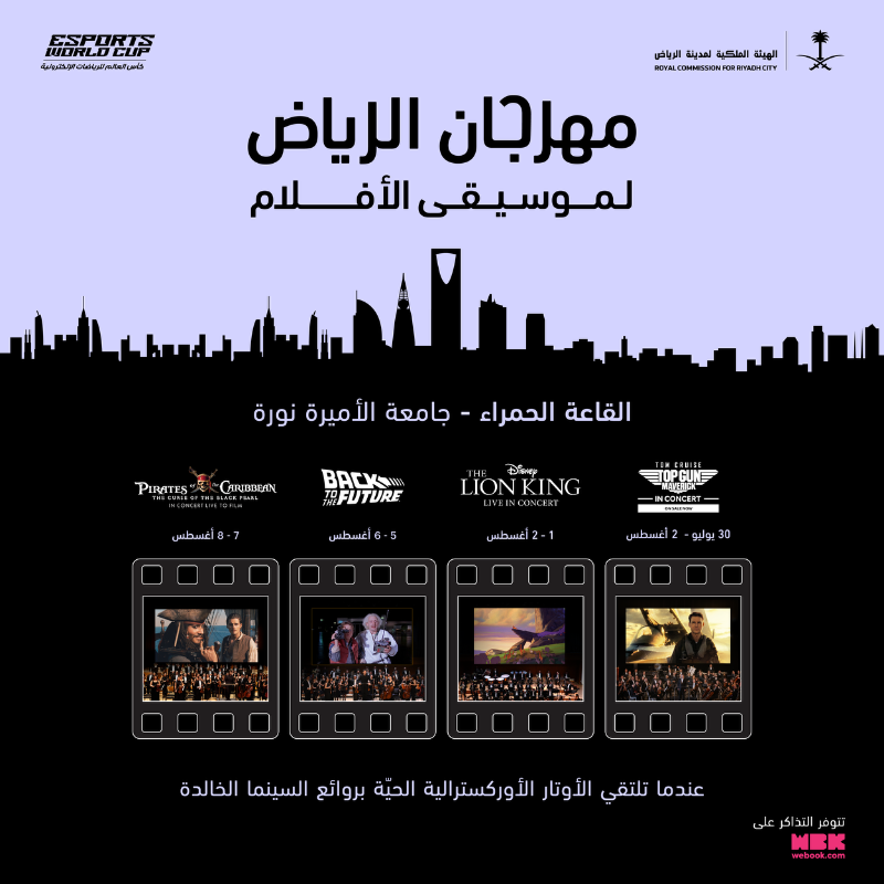 وللمزيد من المعلومات حول عروض وتذاكر “مهرجان الرياض لموسيقى الأفلام”: (https://webook.com).