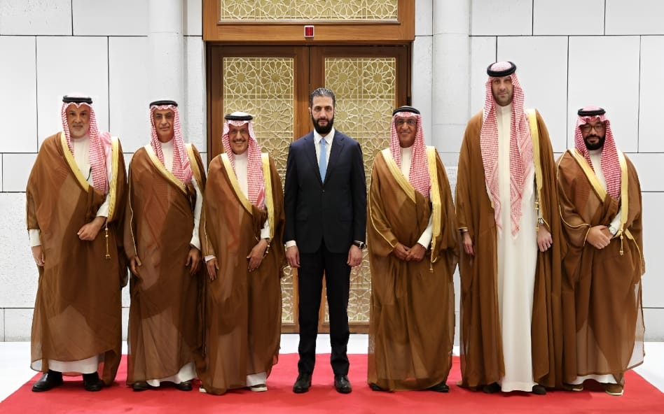 استقبل الرئيس السوري أحمد الشرع وفدًا من رجال الأعمال السعوديين برئاسة محمد أبو نيان وسليمان المهيدب في قصر الشعب بالعاصمة السورية دمشق.