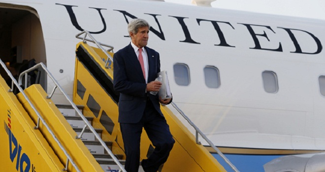 ويرافق كيري مساعد مدير مكتبه جوناثان فاينر وكبير مستشاريه ديفيد ثورن والمتحدثة باسم الخارجية الأمريكية جين ساكي