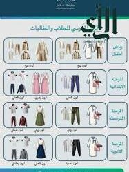 وأكدت الوزارة على ضرورة الالتزام بالزي الوطني في المدارس الحكومية للطلبة السعوديين وغير السعوديين في المرحلة الثانوية، على أن يتم تطبيق الزي المدرسي للطالبات في جميع المراحل الدراسية بشكل إلزامي.