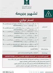 شهرت وزارة التجارة بمواطنين اثنين و 4 مقيمين من الجنسيتين اليمنية والفلسطينية لتورطهم في جريمة تستر تجاري في قطاعات المقاولات والأجهزة الطية ومنتجات التبغ بمنطقة القصيم، وهم: “صالح بن محمد بن عبدالله المرزوق” سعودي الجنسية يحمل الهوية الوطنية المنتهية بالرقم (XXXXXX6553) و”بندر بن فهد بن عبدالله الحميد” سعودي الجنسية يحمل الهوية الوطنية المنتهية بالرقم (XXXXXX0903) و”صدام رزاز أحمد حمود” يمني الجنسية يحمل هوية مقيم المنتهية بالرقم (XXXXXX7192) و”هيثم رزاز أحمد حمود” يمني الجنسية يحمل هوية مقيم المنتهية بالرقم (XXXXXX4451) و”بسام رزاز أحمد حمود” يمني الجنسية يحمل هوية مقيم المنتهية بالرقم (XXXXXX7218) و”أحمد شوقي عطايا الطناني” فلسطيني الجنسية يحمل هوية مقيم المنتهية بالرقم (XXXXXX8206).