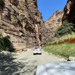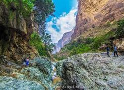 وتتميز جنبات الوادي بحدائق طبيعية معلقة تضم أشجار نخيل شاهقة يتجاوز ارتفاعها 30 مترًا، إلى جانب الأشجار المعمرة التي تنتشر بين الصخور الشاهقة، في مشهد يعكس تنوع الغطاء النباتي وروعة البيئة المحلية.