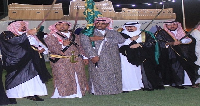 ثم تفاعل الحضور مع الفرقة الشعبية التي قدمت عددا من ألوان الفنون الشعبية والعرضة السعودية التي شارك بها محافظ البكيرية والمسئولون والأهالي.