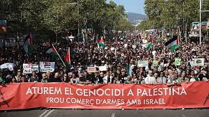 في مشهد لافت يعكس تصاعد التضامن الشعبي مع غزة، شهدت مدينة برشلونة الإسبانية، السبت، تظاهرة ضخمة شارك فيها نحو 70 ألف شخص، وفق تقديرات الشرطة، مطالبين بوقف تجارة السلاح مع إسرائيل، ورفع الحصار المفروض على القطاع.