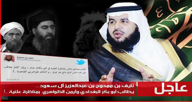ووجه الأمير عبر حسابه الرسمي بموقع التواصل الاجتماعي “تويتر”، الأحد (3أغسطس 2014)، دعوة لزعيم تنظيم الدولة الإسلامية “داعش” أبي بكر البغدادي ولزعيم تنظيم القاعدة أيمن الظواهري بالمناظرة والمباهلة العلنية.