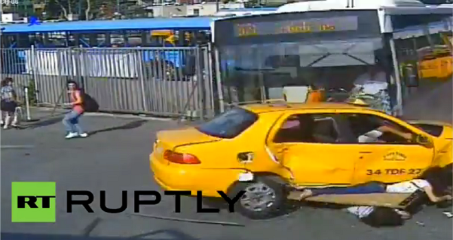 أثار فيديو نشره نشطاء على الإنترنت الساعات الماضية اندهاش مئات المتابعين، نظرا للطريقة الغريبة التي اصطدمت بها حافلة ركاب سياحية بسيارة أجرة أمام مدخل ميناء اسطنبول، ثم اقتحام بوابة الميناء وتدميرها، فضلا عن إصابة 18 شخصا، بعضهم حالتهم خطيرة.