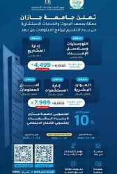 وتتراوح مدة البرامج بين عام دراسي واحد وعامين دراسيين، مع إتاحة خصومات للتسجيل المبكر، إضافة إلى خصم إضافي بنسبة 10% لمنسوبي جامعة جازان، وأبناء الشهداء، ومستفيدي الضمان الاجتماعي.