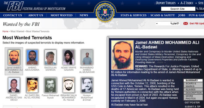 ولفت المكتب إلى أنه لم تدرج أسماء هؤلاء الخمسة بقائمة “أخطر الإرهابيين المطلوبين” إلا بعد جمع الأدلة التي تثبت تورطهم في أعمال إرهابية، وعرض تلك الأدلة على هيئة المحلفين الكبرى التي أقرت توجيه الاتهام إليهم.