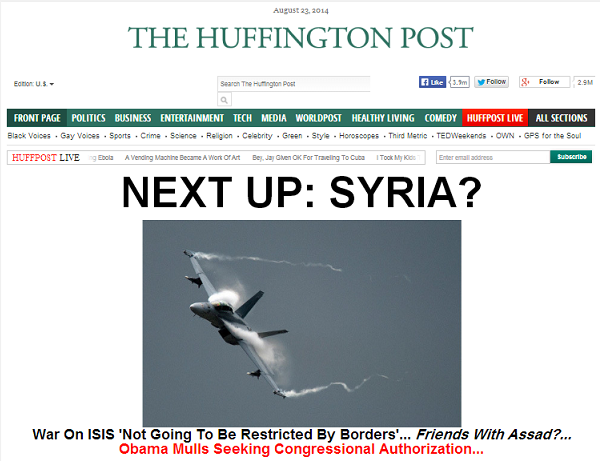 وتحت عنوان “هل جاء الدور على داعش في سوريا ؟”، تقول صحيفة “هفنتون بوست” الأمريكية، إن الحرب على “داعش” لا حدود لها، وأن الرئيس الأمريكي باراك أوباما يسعى للحصول على موافقة الكونجرس لتوجيه ضربات جوية للتنظيم في سوريا، وتتساءل الصحيفة: هل يعني ذلك أن الغرب سيتحالف مع الرئيس السوري بشار الأسد؟