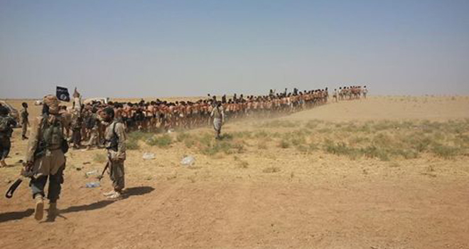 وجاء في الفيديو الذي نشر على يوتيوب الأربعاء 27 أغسطس 2014 ولم يتسن التأكد من صحته مقاتلين مدججين بالأسلحة يسوقون عشرات الشباب الذين تمت تعريتهم من ملابسهم عدا ما يستر عورتهم وأيديهم خلف رؤوسهم إلى مكان مجهول، فيما يحاوطهم عناصر التنظيم المدججون بالسلاح.
