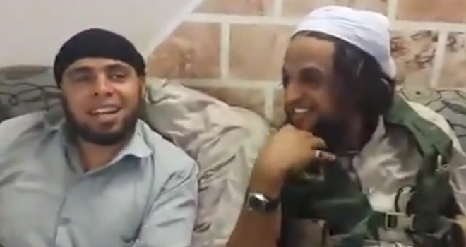 ويبدو في الفيديو شاب سعودي اللهجة يُكنى بـ”أبي فهد”، وهو يتحدث في مميزات السبايا بين ذات العيون الزرقاء وابنة الـ14 عامًا وغيرها من المميزات، وسط ضحكات تهكمية يطلقها بقية العناصر.