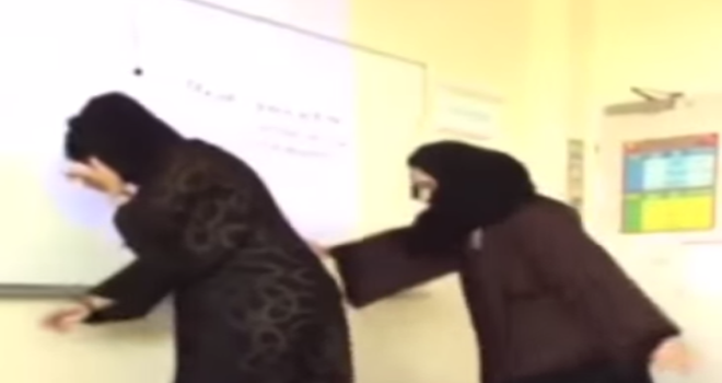 وأظهر مقطع الفيديو المصور في داخل فصل دراسي مقفل الباب حصلت “أحد المصادر” على نسخه منه -كما اتضح من وجود سبورة تعليمية- معلمتين ترقصان على صوت الموسيقى الصاخبة، فيما لم تتجاوز مدته 11 ثانية.