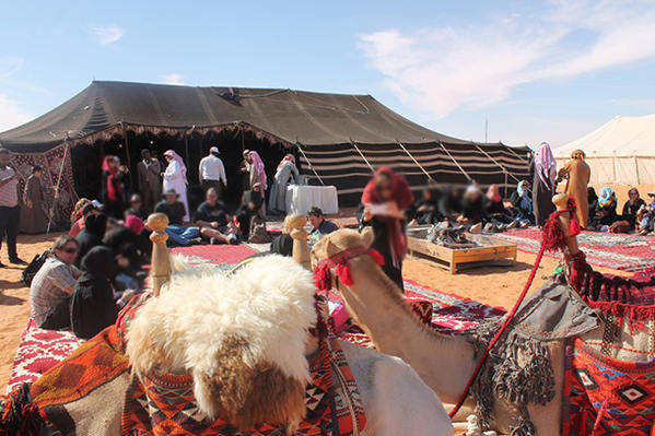 وتوجه الوفد إلى مخيم الضيافة التي تقيمه اللجنة المنظمة للمهرجان للضيوف، حيث تناول الوفد القهوة العربية، وبعض الأكلات الشعبية التي تشتهر بها المملكة، إلى جانب ركوب الهجن، حيث تجولوا في المضمار المخصص لها.