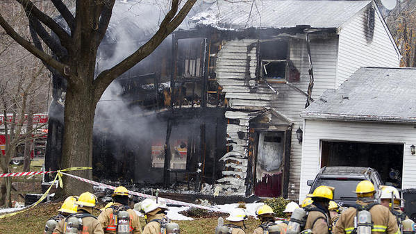 وتضررت منازل كثيرة من حطام الطائرة.