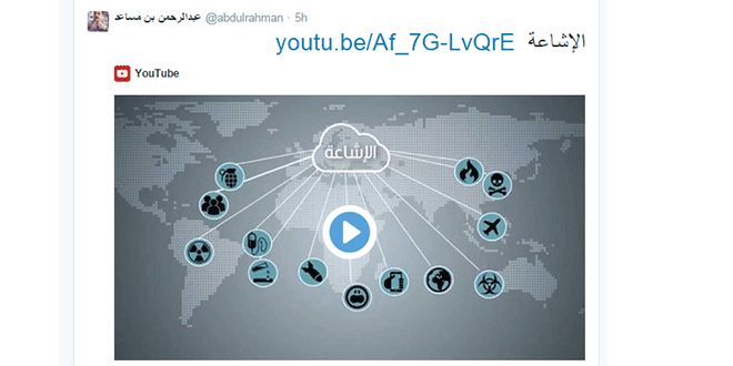 الفيديو الذي قام بن مساعد بوضعه على حسابه يتركز على تقديم توعية شاملة ومفصلة بقضية “الإشاعة”، وتوضيح أنواع الإشاعات ومراحل ترويج الإشاعات بين الناس وأهداف الإشاعات وخطورتها على المجتمع، وكيف أنها طالت الأنبياء والرسل، وكذلك توضيح أنواع مروجي الإشاعات، وكيفية التعامل مع الإشاعات بطريقة صحيحة.