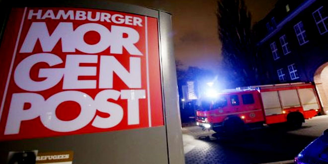 تعرض مبنى صحيفة “هامبورجر مورجن بوست” الألمانية لحريق متعمد، إثر نشرها رسومًا مسيئة للنبي محمد -صلى الله عليه وسلم- كانت صحيفة “شارلي إيبدو” الفرنسية قد نشرتها من قبل.