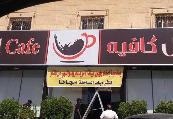 وكان المحل قد وضع لافتة صباح اليوم أعلن فيها تقديم المشروبات الساخنة بالمجان، مشيراً إلى أن ذلك يأتي بمناسبة صدور قرار إعفاء رئيس أحد القطاعات الحكومية.