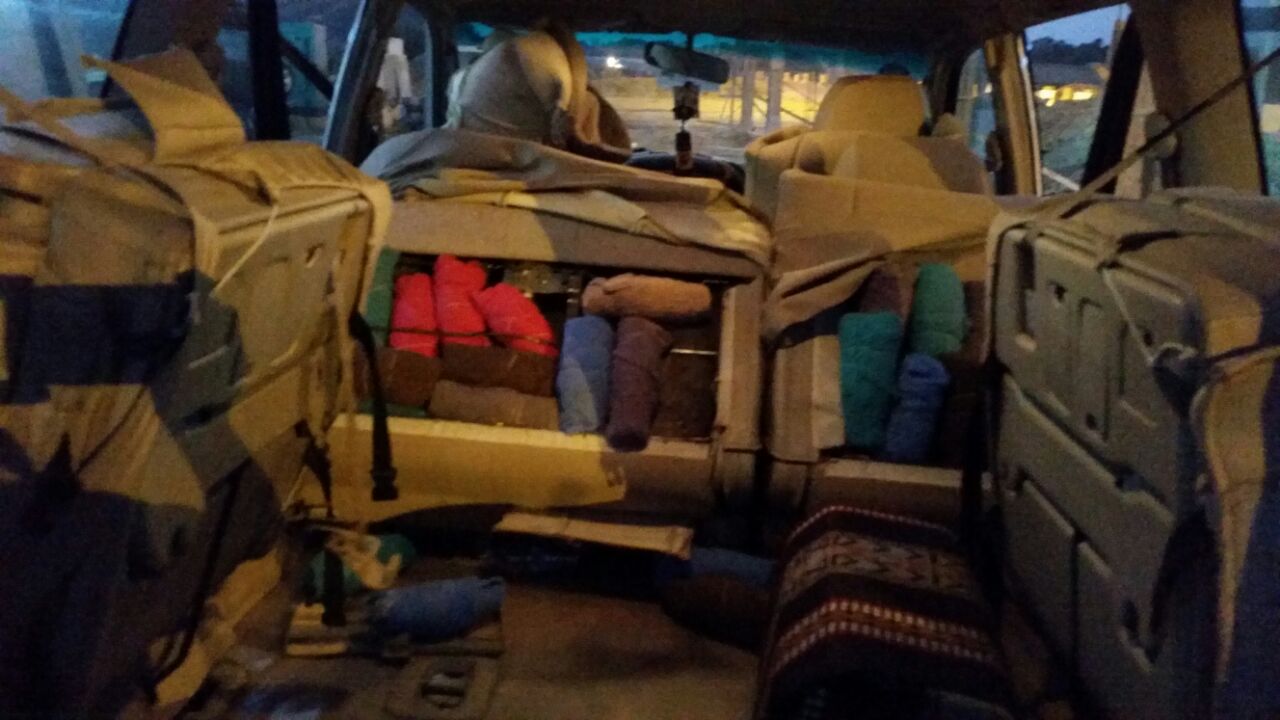 باخفائها اسفل المرتبة الوسطى للمركبة التي يستقلونها وهي من نوع لاند كروزر تويوتا