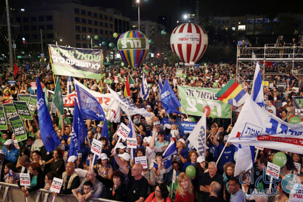 شارك عشرات الآلاف من الإسرائيليين في مظاهرة في تل أبيب، ضد رئيس الوزراء بنيامين نتنياهو، دعا المشاركون من خلالها إلى تغيير اتجاه إسرائيل السياسي والقيادي.