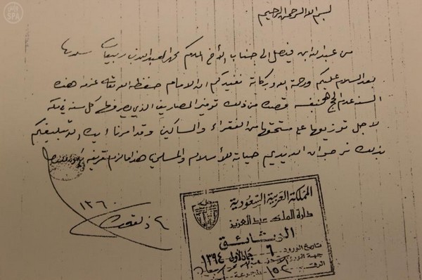 ولفت الدكتور “العُمري” إلى أن الأمير عبد الله الفيصل – رحمه الله، كتب برقية في 4 ذي القعدة عام 1360هـ، حينما كان أميراً لمنطقة القصيم، بيّن فيها اعتذار الملك عبد العزيز عن الحج في ذلك العام، وتوجيهه بتوزيع نفقة الحج على الفقراء، وأدرجتها دارة الملك عبد العزيز ضمن وثائقها الرسمية في تاريخ 6 جُمادى الأولى عام 1394هـ.