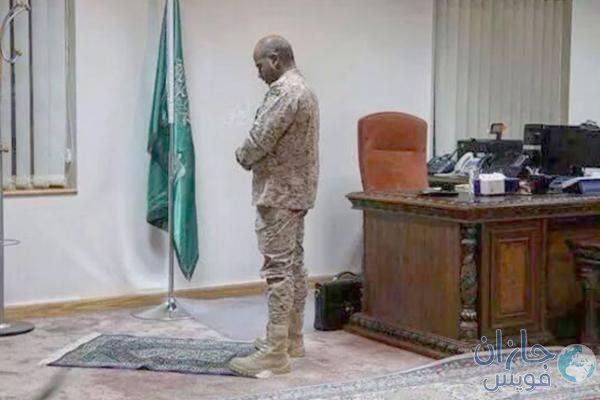 حظيت صورة للمتحدث العسكري باسم “عاصفة الحزم” العميد أحمد عسيري” وهو يؤدي الصلاة في مكتبه مرتديًا زيه العسكري الكامل، بإعجاب العشرات من مغردي موقع التواصل الاجتماعي “تويتر”.