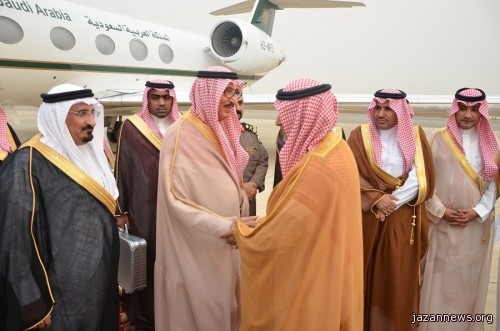 وكان في استقبال سموه لدى وصوله مطار الملك عبدالله بن عبدالعزيز بجازان معالي مدير جامعة جازان الدكتور محمد بن علي آل هيازع ووكيل أمارة منطقة جازان الدكتور عبدالله بن محمد السويد وفضيلة قاضي المحكمة العامة بجازان الشيخ علي بن جده منقري وفضيلة رئيس المحكمة الجزئية الشيخ علي بن شيبان العامري وفضيلة رئيس الدائرة الجزائية عضو الدائرة التأديبية بالمحكمة الإدارية الشيخ عبدالعزيز بن بندر الجماز .