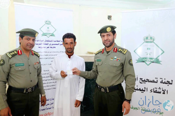 أصدرت جوازات منطقة الجوف بمدينة سكاكا، الخميس ( 15 مايو 2015)، أول بطاقة زائر لمقيم يمني، ممن دخلوا المملكة بطريق غير نظامية من أبناء اليمن الشقيق.