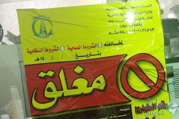 أغلقت أمانة منطقة الجوف، الإثنين (25 مايو 2015)، محلا لبيع العصائر لمخالفته الشروط الصحية، وعدم الاهتمام بالنظافة.