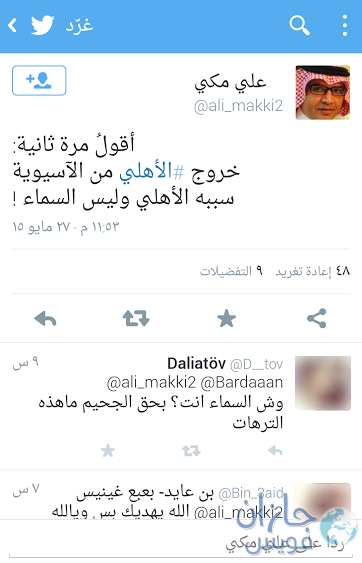 وغرد “المكي” عبر حسابه الخاص في موقع التواصل الاجتماعي “تويتر” عدة تغريدات بعد خسارة نادي الأهلي قال فيها: