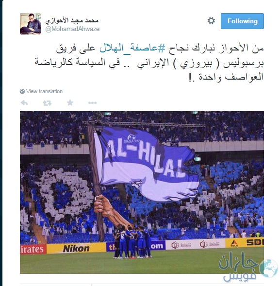 جازان الرياضية > عرب الأحواز: مبروك نجاح عاصفة الهلال فالعواصف واحدة