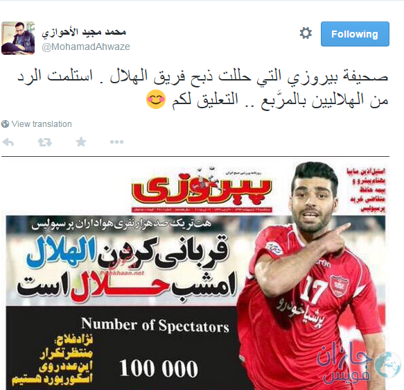 ونقلت صحيفة “الرياضية” عن مصادر لها في منطقة الأحواز، أن رصاص قوات الأمن الإيرانية كان للمحتفلين بالمرصاد، حيث سقط أربعة جرحى عندما فتح الأمن الإيراني النار على المحتفلين بفوز الهلال على بيرزي ليسقط الجرحى الأربعة برصاص الغدر.