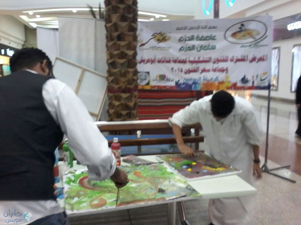دشن المعرض التشكيلي سلمان العزم عاصفة الحزم فعاليات المرسم الحر مساء أمس السبت الموافق 8/10 /1436 بساحة الكادي مول بجازان وقد استضافت الاستاذة بشرى السيد الاستاذة الكاتبة افراح مؤذنه وقد اشادت الاستاذة افراح بجمال المعرض وانطلاق فعاليات المرسم بقولها