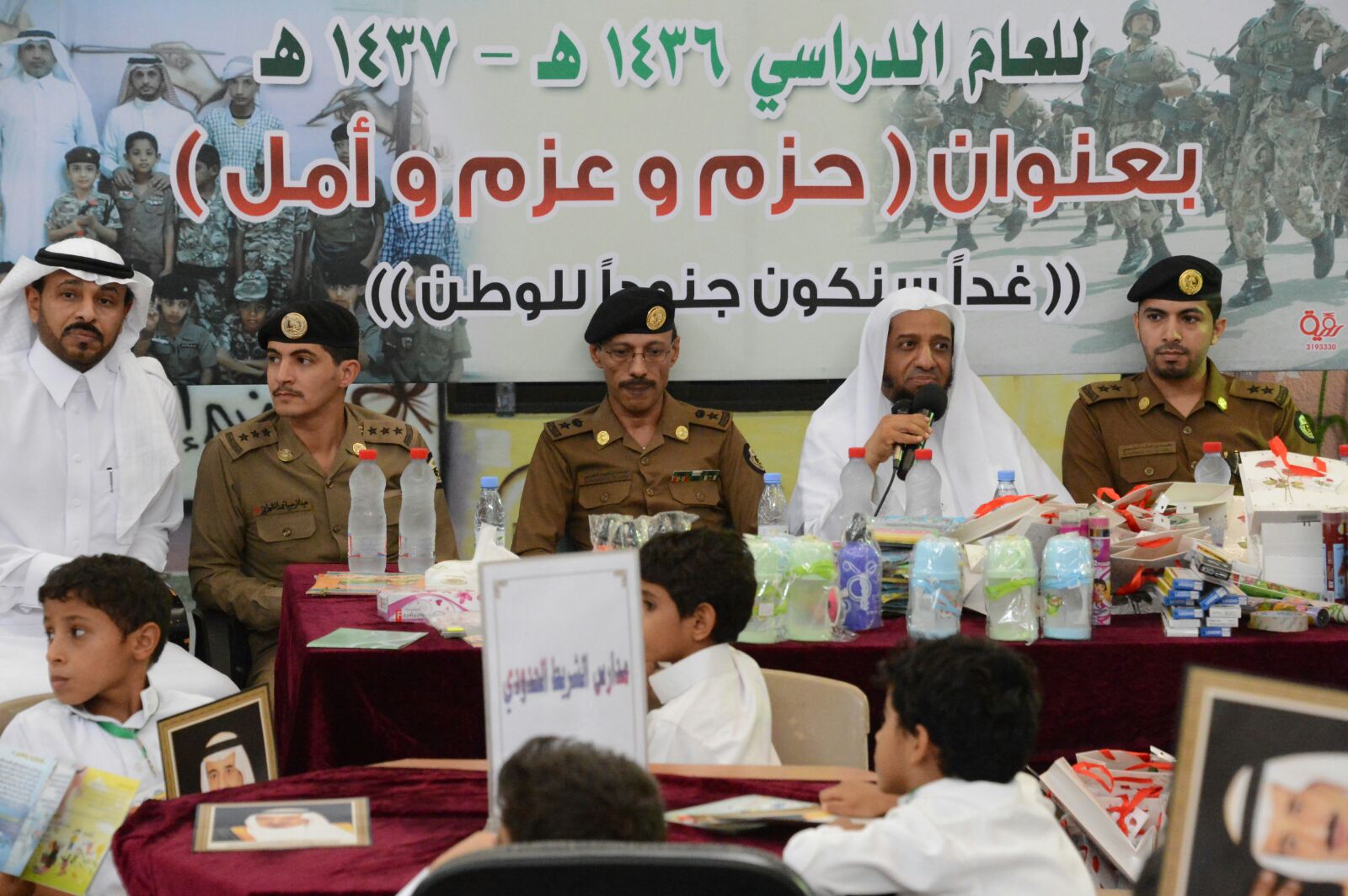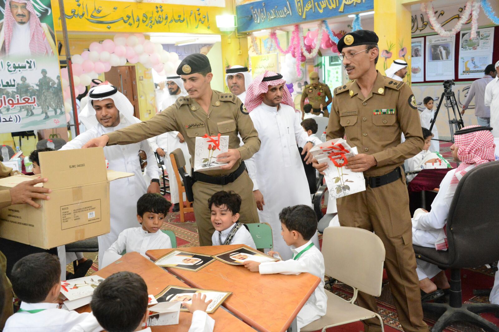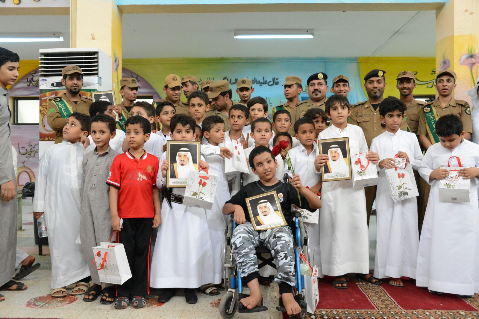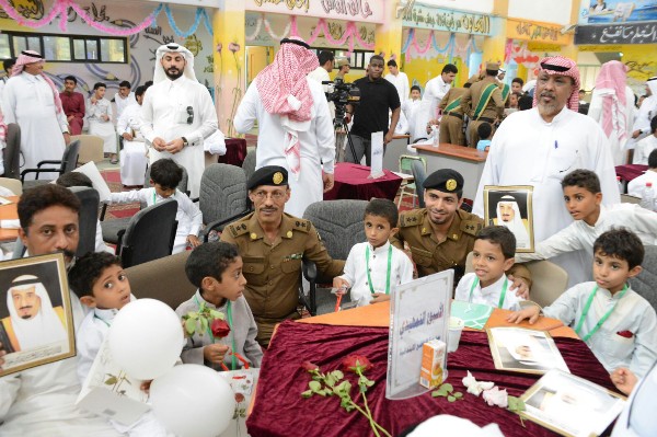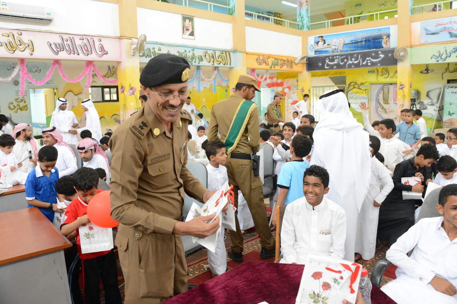 تجسيداً لدورها في حفظ الأمن وإنطلاقا من مسوؤليتها اﻹجتماعية تقوم شرطة منطقة جازان وباشراف مباشر من سعادة مدير شرطة منطقة جازان اللواء ناصر بن صالح الدويسي بتقديم هدايا ﻷطفال المراكز والمحافظات الحدودبة بمناسبة العودة للمدارس لرسم البسمة على محياهم وإزالت الخوف والرهبة التي تنتأب طلاب الصف اﻷول إبتدائي في أول يوم دراسي لهم وقد شاركهم في ذلك مدير مكتب تعليم صامطة الدكتور علي عطيف في أجواء يسودها الفرح والأمن والطمانينه . ويعد هذا البرنامج من إحدى البرامج التي تنفذها شرطة منطقة جازان إنطلاقا من توجيهات صاحب السمو الملكي أمير المنطقة حفظه الله وحرص ومتابعه من معالي مدير الأمن العام .