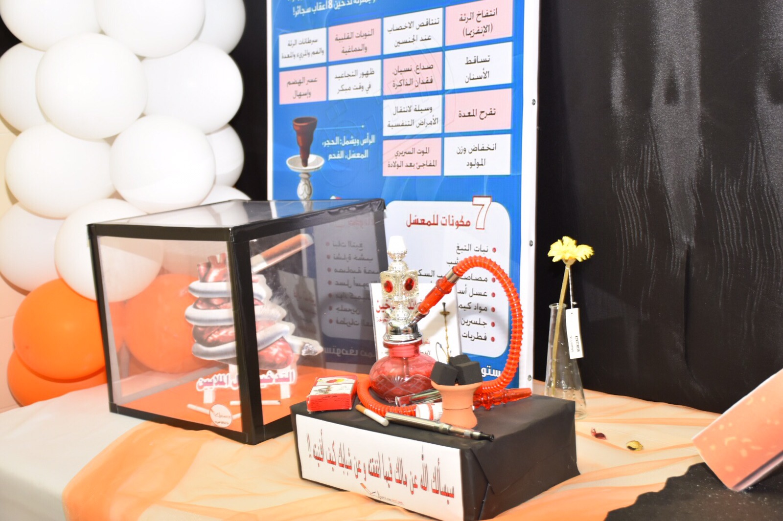 اعتمد المعرض على اللوحات الإرشادية والمجسمات والعروض المرئية وحاكى حال الأسرة ومعاناتها من تواجد الفرد المدخن بداخلها .