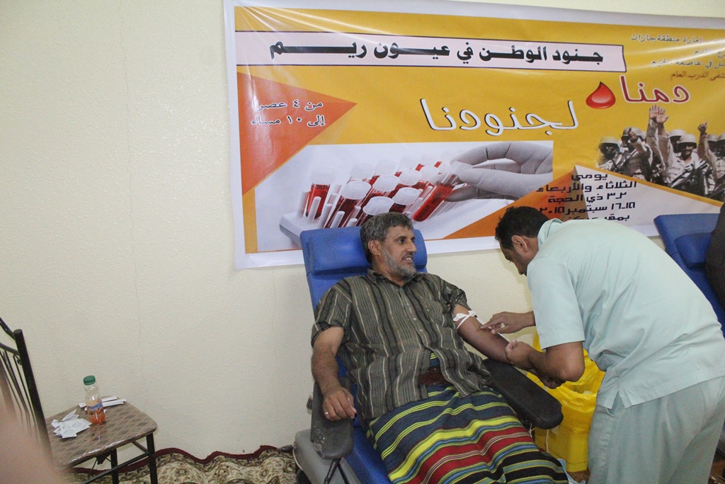 حيث كان في مقدمة المتبرعين بالدم لصالح جنوادنا البواسل المرابطين على الحدود في عاصفة الحزم و إعادة الأمل .