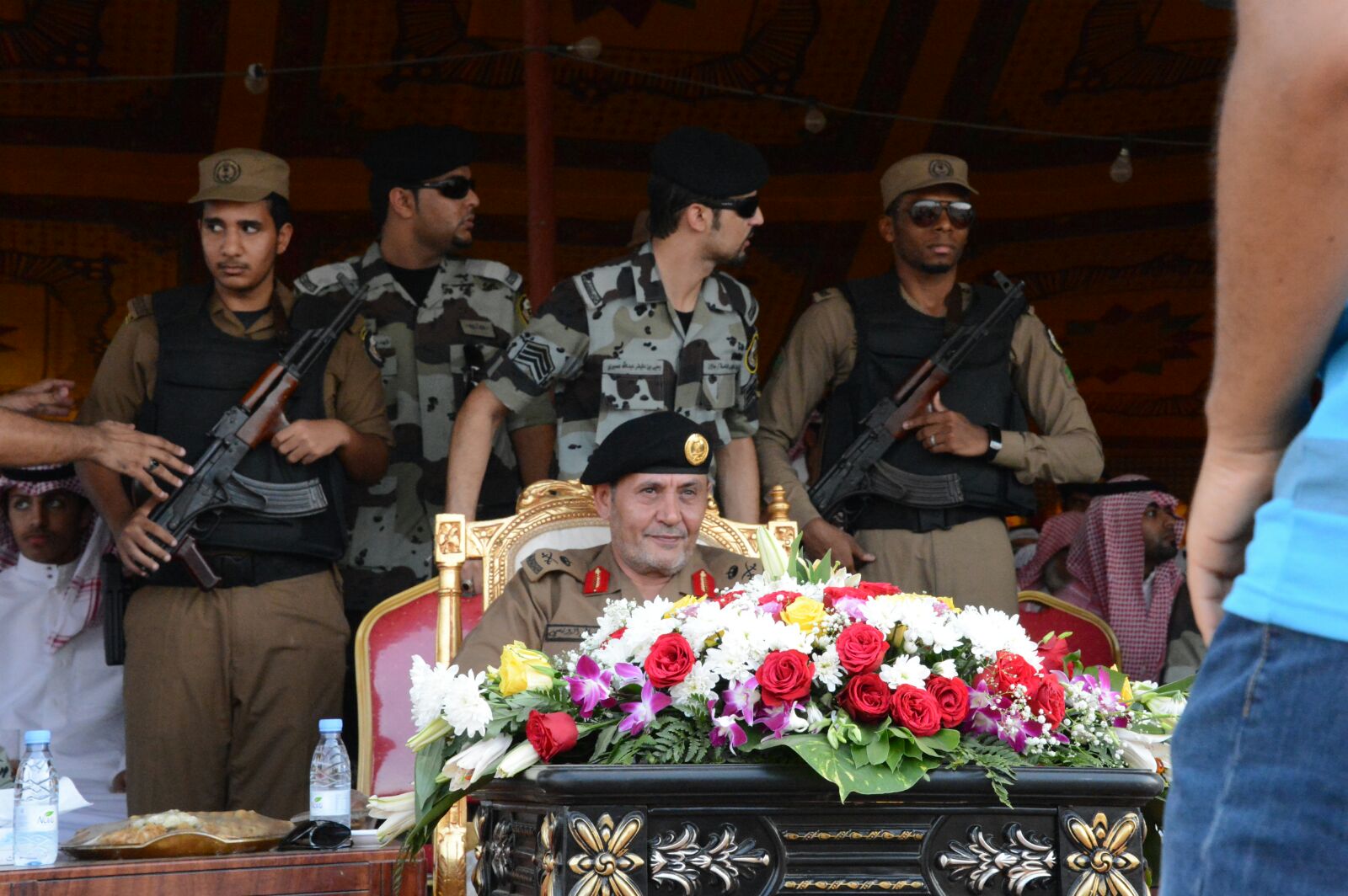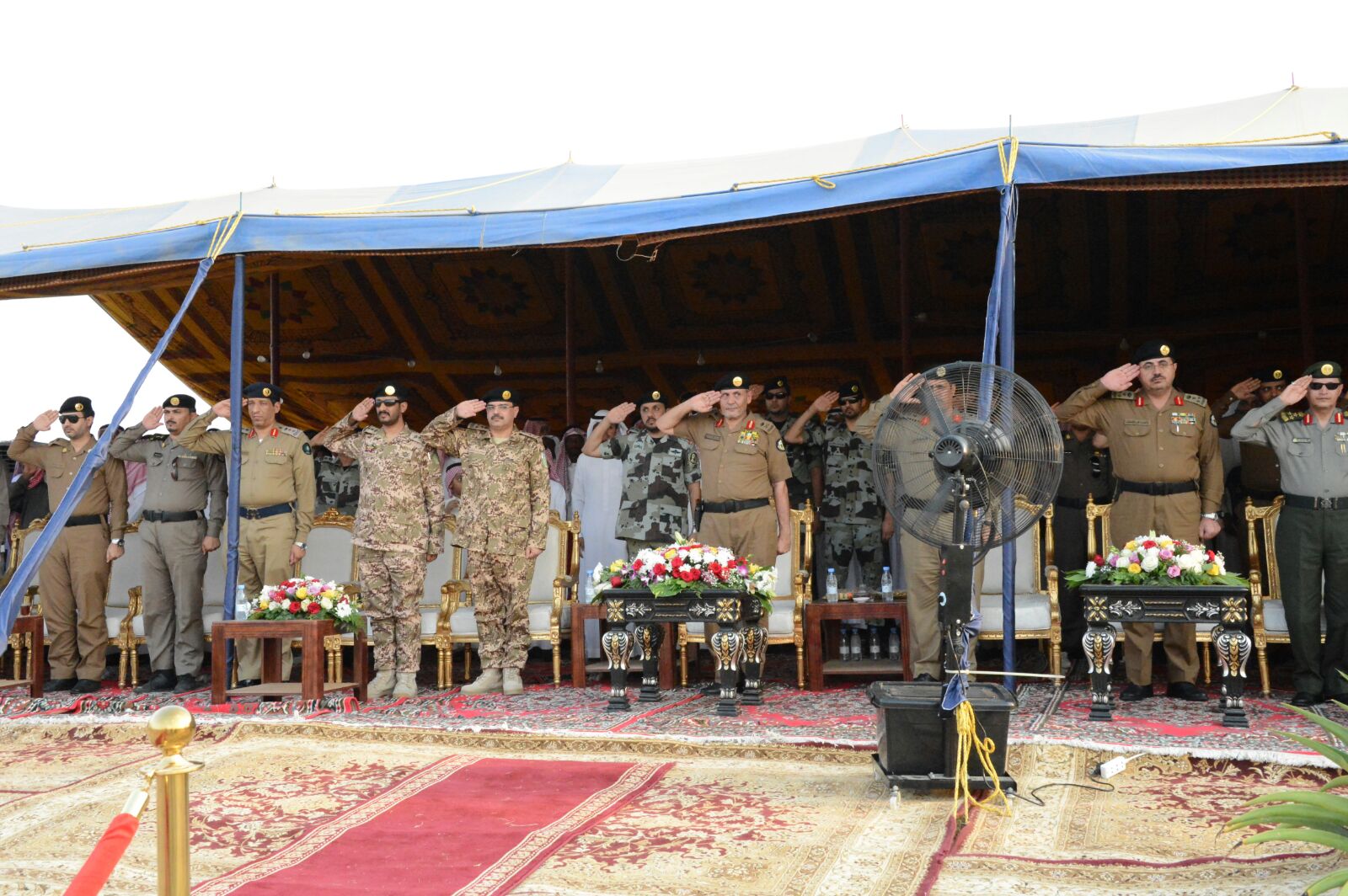 وعند وصول سعادته كان في أستقباله قائد وضباط قوة الطوارئ الخاصة بمنطقة جازان ثم عُزف سلام اللواء , وبدأ الحفل الخطابي بتلاوة آيات من القرآن الكريم .