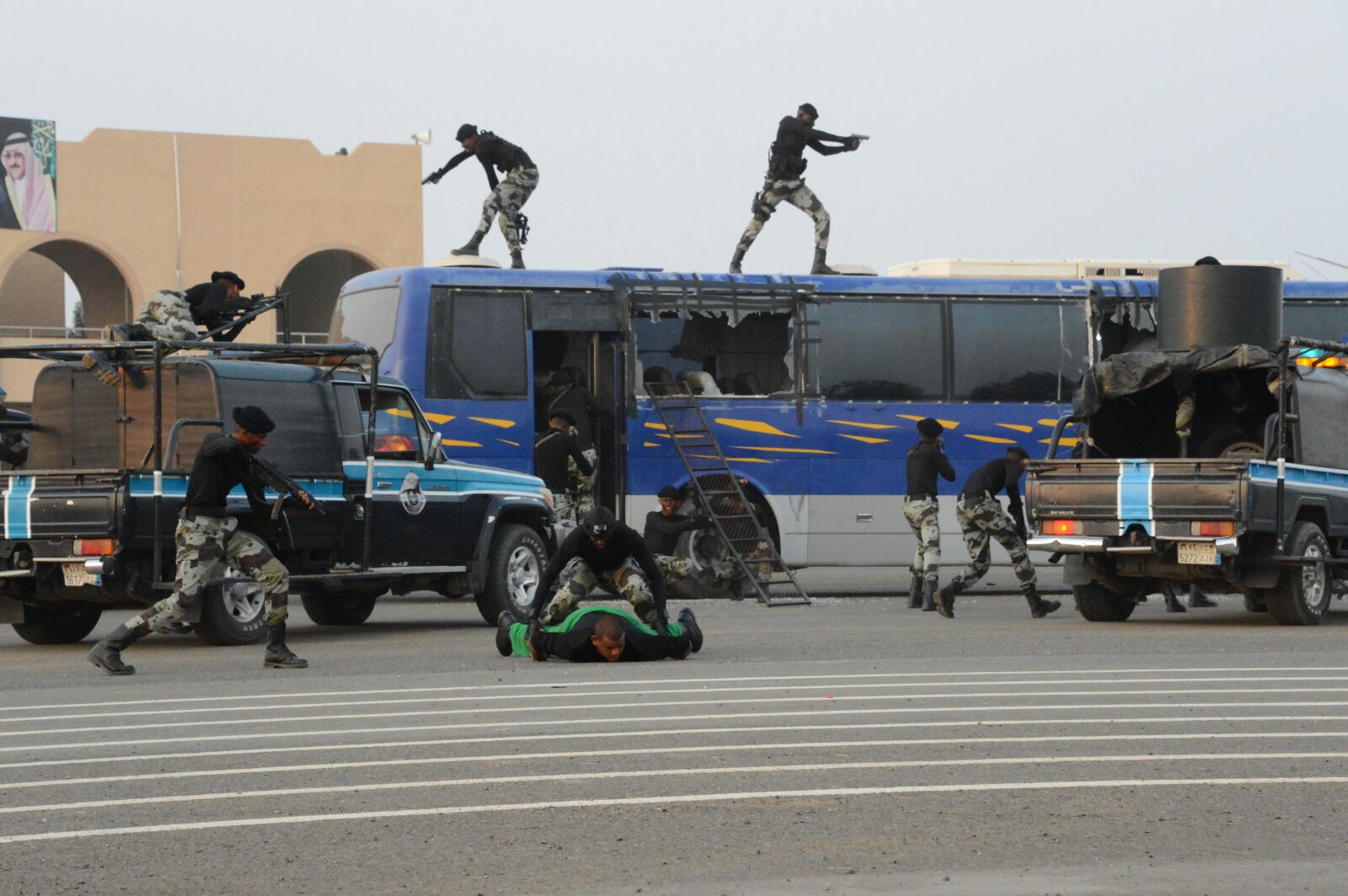 إثر ذلك شاهد راعي الحفل والحضور الكرام العرض العسكري الذي تلاه عروضاً لمهارات الميدان أشتملت على فرضية مهارات النزول بالحبال الريبلينق وفرضية إستيقاف مركبة بعنصر المفاجئة بالقوة الجبرية وفرضية إقتحام مركبة من نوع باص تعرض لهجوم مسلح من قبل مطلوبين وبداخله مجموعة من الرهائن وعروض للجودو والدفاع عن النفس وبعض أنواع الرمايه التأشيريه