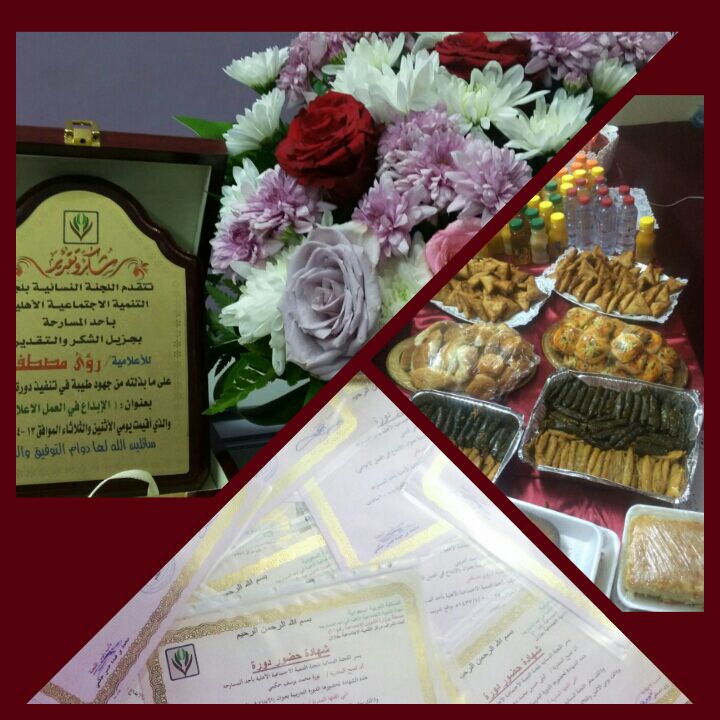وفي الختام تم شكر وتسليم الدرع المدربة , وشهادات الحضور للمتدربات .