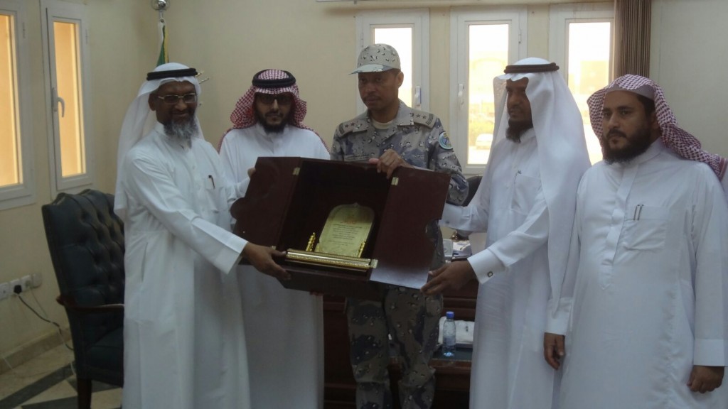 بزيارة سعادة قائد قطاع حرس الحدود بمحافظة الطوال العقيد صالح العمري يوم الخميس 16 / 1/ 1437 في مقر مكتبه بالقيادة