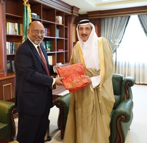 وفي بداية اللقاء رحب سمو أمير منطقة جازان بالسفير البنجلاديشي متمنيا له طيب الإقامة والتوفيق في زيارته للمنطقة وتم خلال اللقاء تبادل الأحاديث الودية والموضوعات المشتركة بين البلدين ومناقشة عدد من الأمور المتعلقة بالجالية البنجلادشية في المنطقة .. والفرص الاستثمارية وبالأخص بعد زيارته للغرفة التجارية والمدينة الاقتصادية التي تشهد العديد من المصانع والشركات ومنها شركة أرامكو لتوفير الكثير من الفرص الاستثمارية منوها بالعلاقات المتميزة بين البلدين في ظل قيادة البلدين.