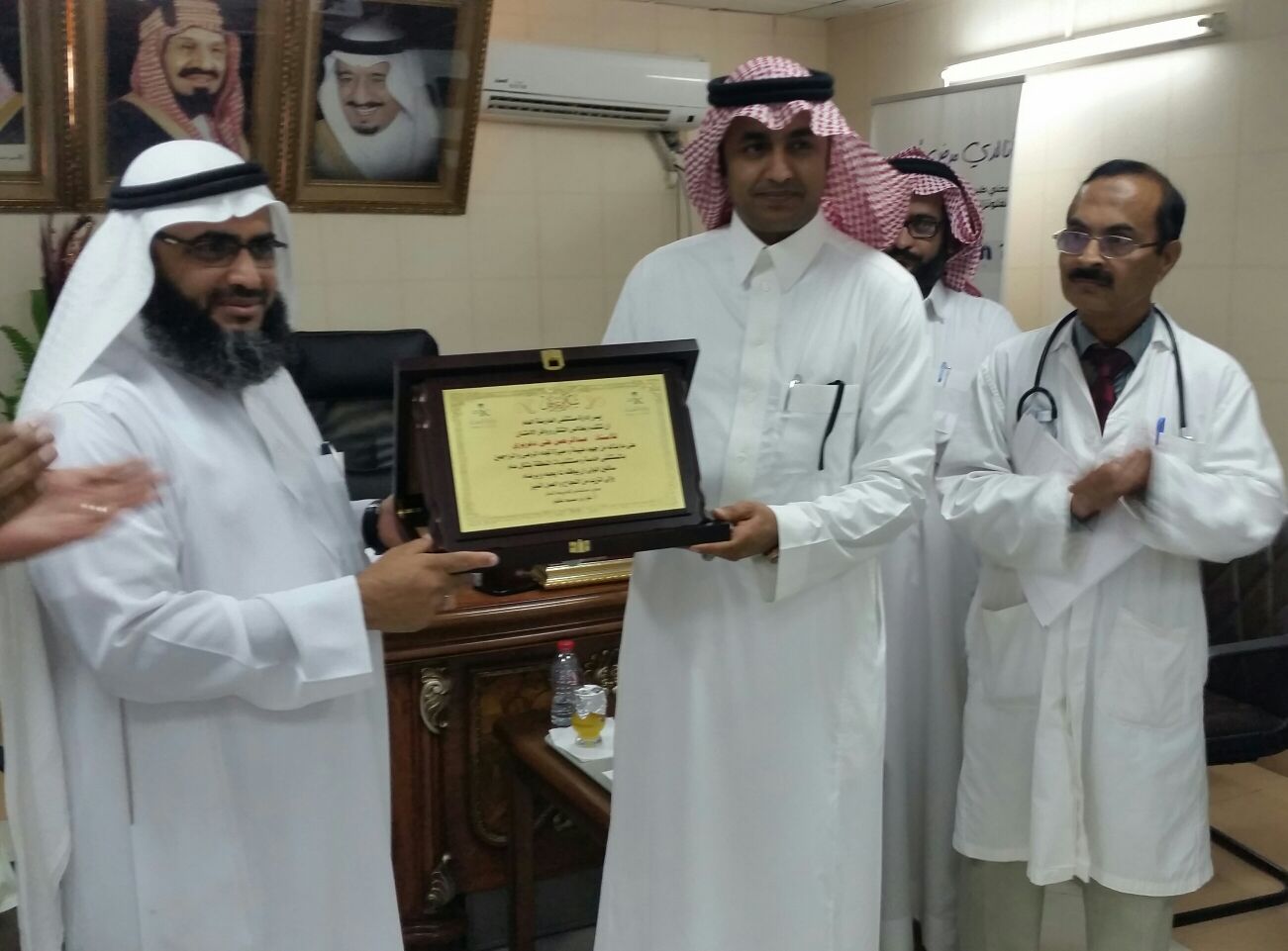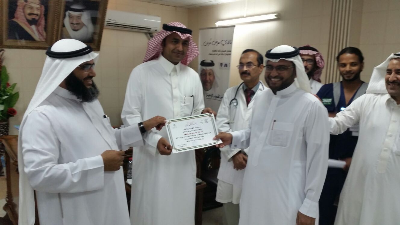 سائلا المولى عز وجل لهم الاجر والثواب والتوفيق في حياتهم المهنية والعملية .. كما تم تقديم درع لمدير إدارة أهلية العلاج والتنسيق الطبي الأستاذ مقبول أحمد ازيبي ودرع لمدير إدارة الأزمات والطوارئ بصحة جازان .